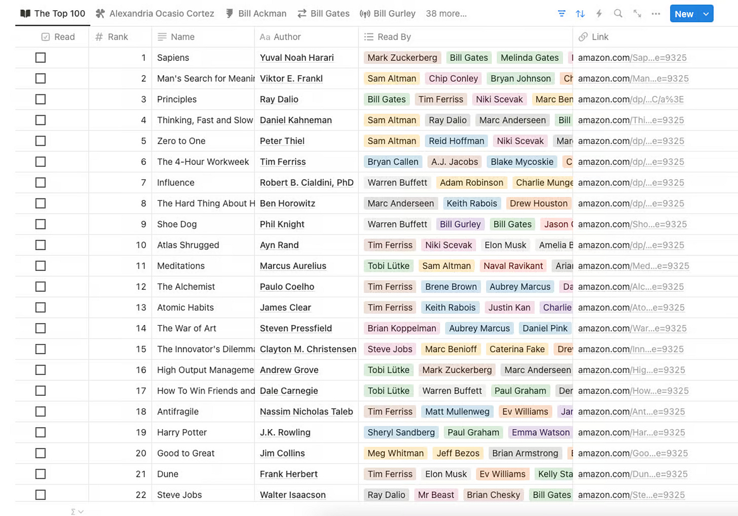 So, we’re sharing a curated (and trackable) database for you of the top 100 books in business. Use it to find your next read, or follow along with your own reading journey.