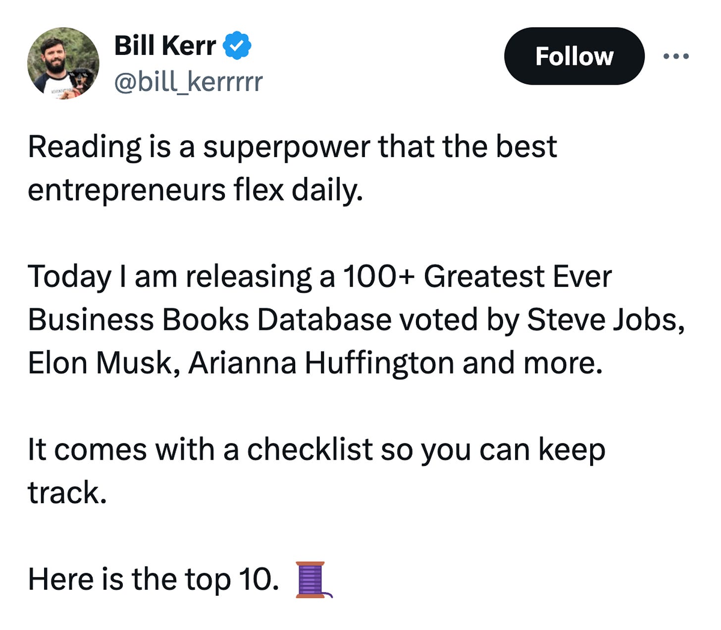 Link seems to not be working for some of you. here we go: https://magic.beehiiv.com/v1/d84eded1-2011-46cc-8c41-c1b26426efef?&redirect_to=https://athyna.notion.site/100-Greatest-Business-Books-Database-832f28edf7dd418da3bb0696001fd42a?pvs%3D4